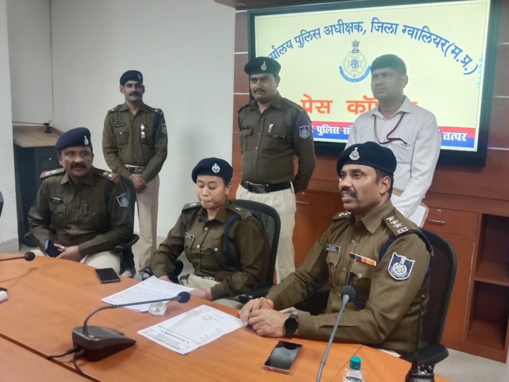 ग्वालियर। 02.11.2022। ग्वालियर पुलिस द्वारा पुलिस अधीक्षक ग्वालियर श्री अमित सांघी,भापुसे के निर्देश पर ठगी करने वाले बदमाशों के विरूद्ध प्रभावी कार्यवाही की जा रही है। फरियादी रामनरेश प्रजापति द्वारा पुलिस अधीक्षक ग्वालियर के समक्ष एक शिकायती आवेदन पत्र प्रस्तुत कर शिकायत की थी कि आरोपीगणों द्वारा मोबाइल टॉवर लगाने के नाम पर फरियादी के साथ 28 लाख रूपये की ठगी की गई है। एसपी ग्वालियर द्वारा उक्त शिकायत को गंभीरता से लेते हुए अति0 पुलिस अधीक्षक शहर-मध्य/यातायात श्री मृगाखी डेका,भापुसे को थाना हजीरा पुलिस बल की टीम बनाकर कार्यवाही करने के लिये निर्देशित किया गया।