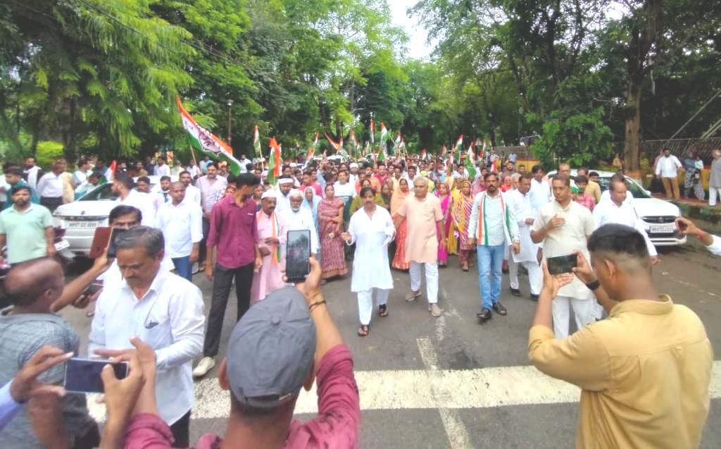 ग्वालियर30जुलाई2025। विधानसभा क्षेत्र की जमीनी समस्याओं — जलभराव, गंदे नालों, उखड़ी सड़कों और बंद स्ट्रीट लाइटों से हो रही परेशानी को लेकर कांग्रेस कार्यकर्ताओं ने बुधवार को जोरदार प्रदर्शन किया। कांग्रेस प्रदेश महासचिव सुनील शर्मा के नेतृत्व में कार्यकर्ताओं और महिलाओं ने बाल भवन से सिटी सेंटर स्थित आयुक्त कार्यालय तक पदयात्रा कर कार्यालय का घेराव किया और ज्ञापन सौंपा।